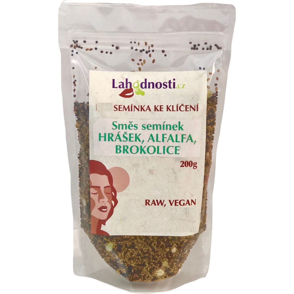 SMĚS SEMÍNEK HRÁŠEK, ALFALFA, BROKOLICE - semínka ke klíčení 200g