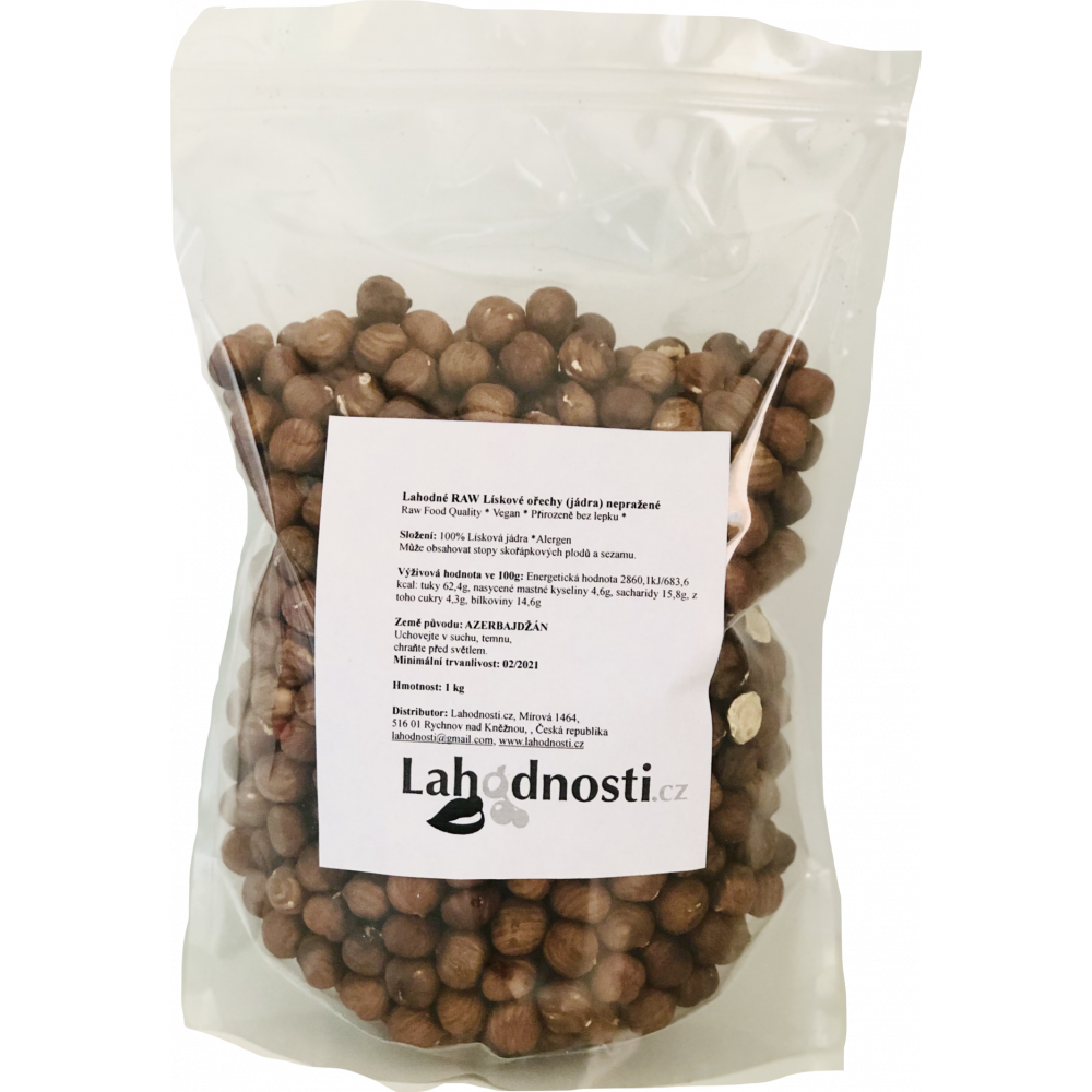 Vynikající lískové oříšky v RAW kvalitě. Nejsou zahřívané v žádném procesu loupání, ani následně pasterované.